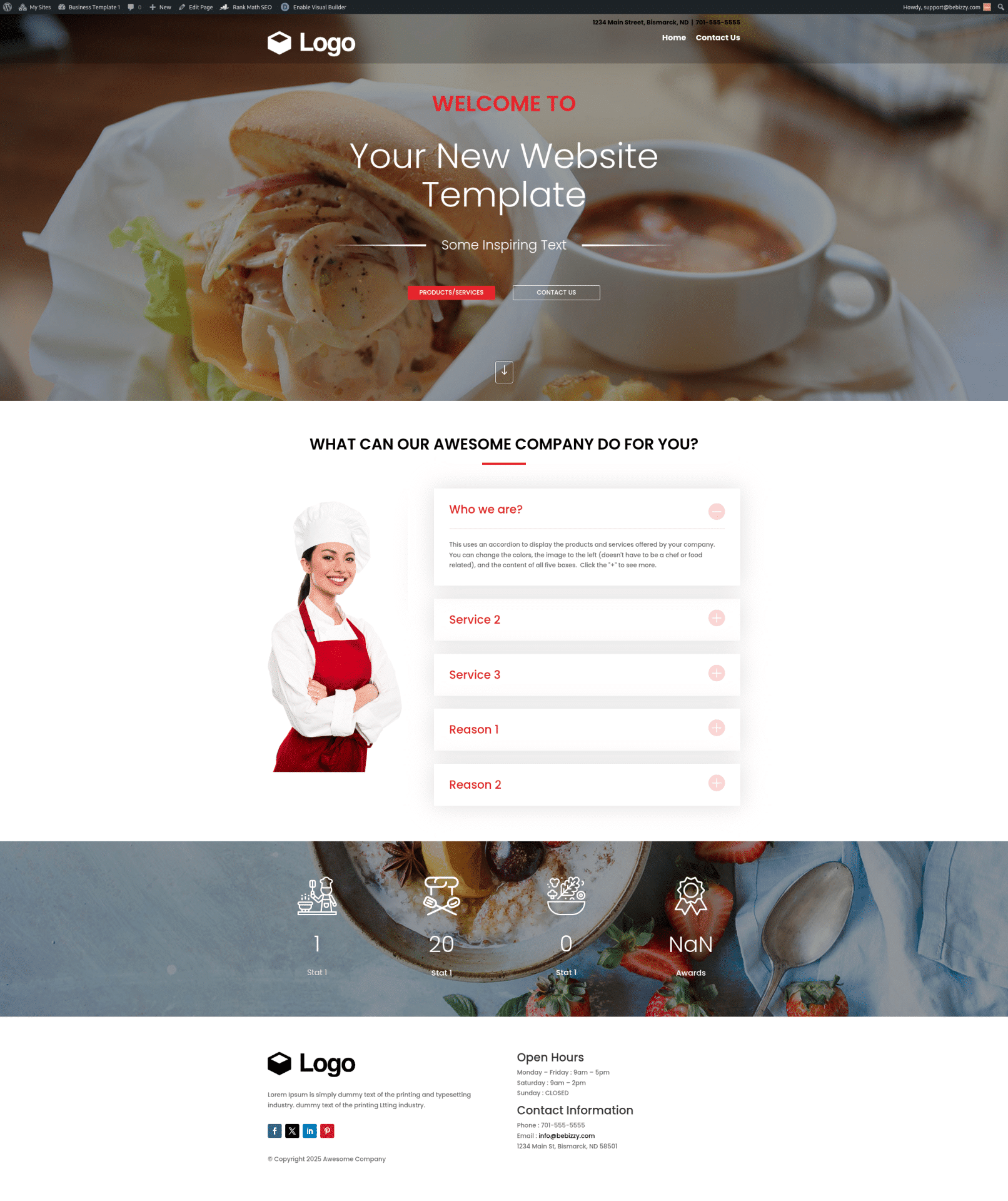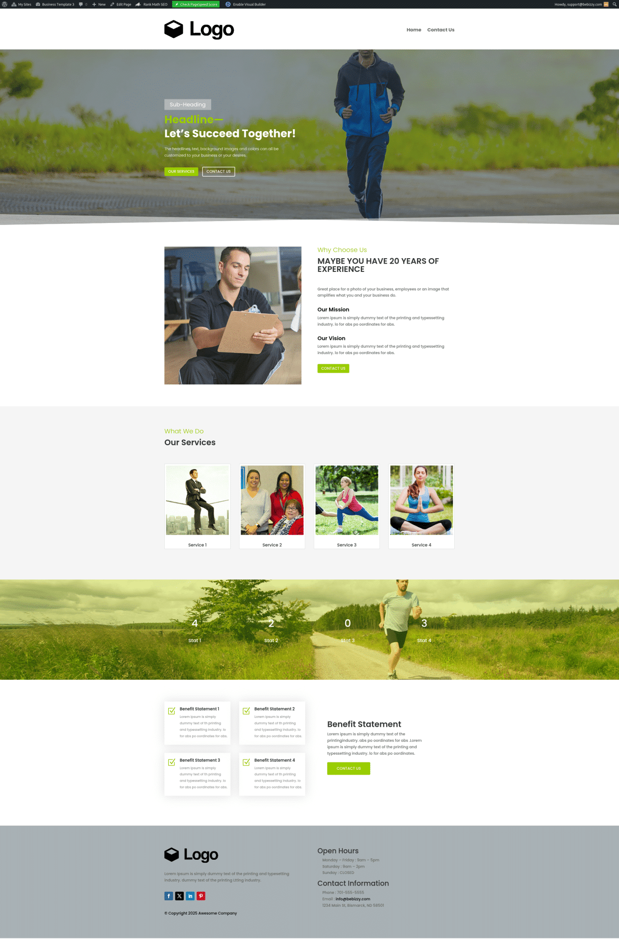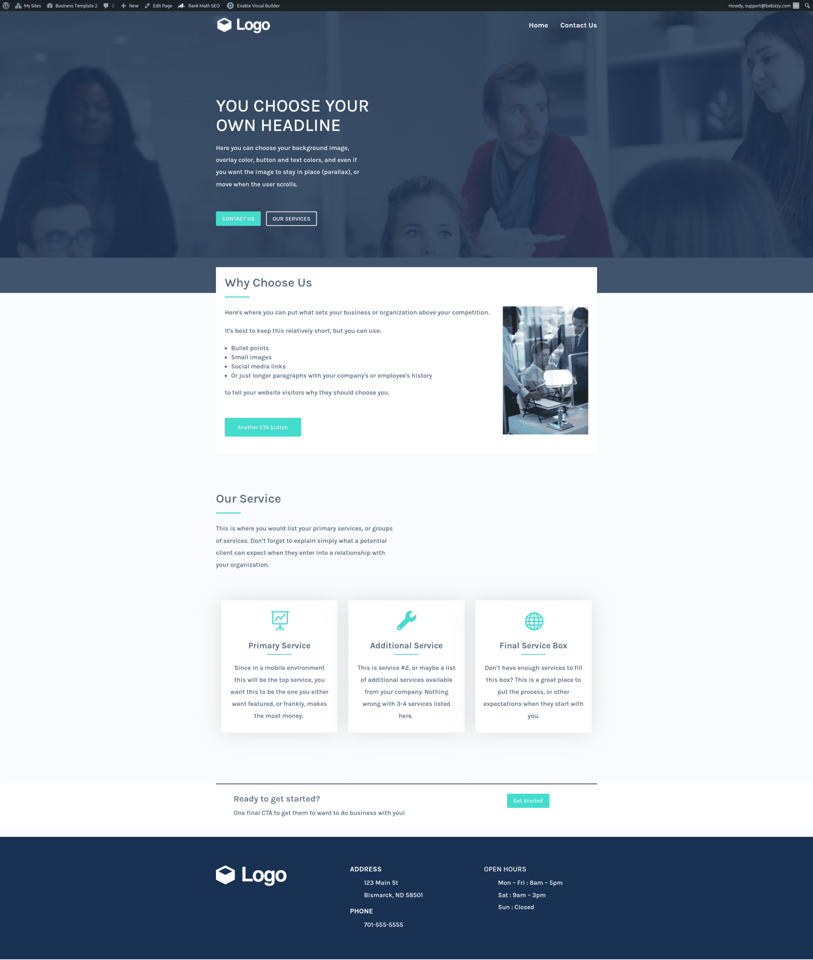 You provide a few items (logo, photos, service content, about your business and some contact info) and BeBizzy builds the site, assigns a domain name you approve and launches the site, all in days. Each template includes a landing (home) page, and a contact form so your customers can learn about you, your products and services, and have a way to contact you.
